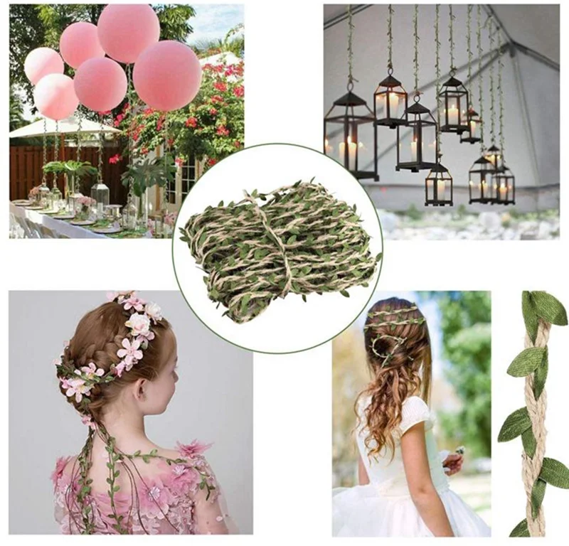 This 3-meter green leaf hemp rope adds a natural, rustic touch to any project. Designed with woven faux leaves, it’s perfect for decorating weddings, birthdays, bouquets, gift packaging, and DIY crafts. Its soft yet durable texture makes it ideal for wrapping, tying, and creating elegant handmade decorations.