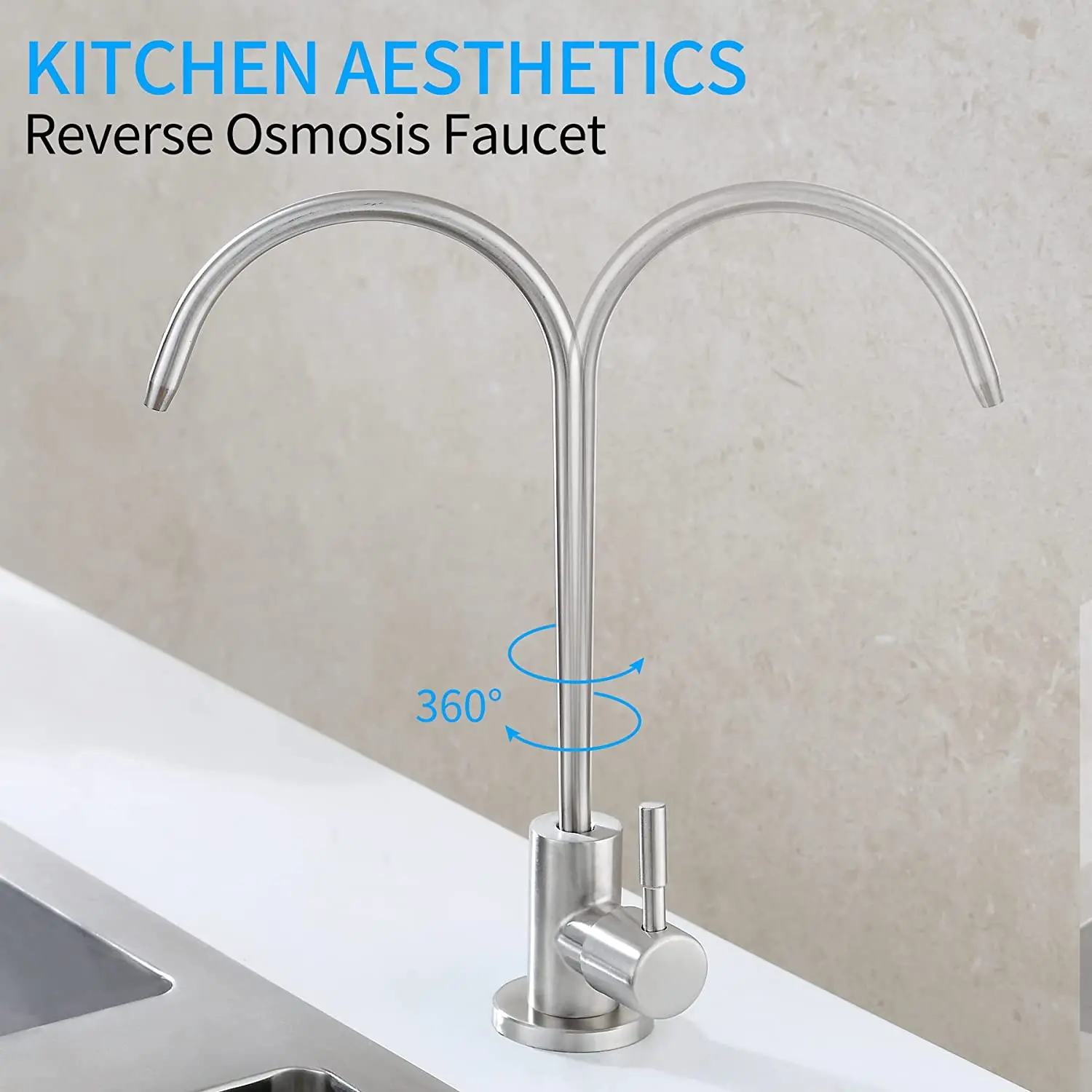 Ensure safe and clean drinking water with this lead-free water purifier faucet, compatible with reverse osmosis units and water filtration systems. Designed for kitchen use, it delivers filtered water directly from your RO system, providing reliable protection against contaminants. The sleek, durable construction ensures long-lasting performance while complementing modern kitchen décor. Easy to install and maintain, this faucet offers convenience and peace of mind for your household water needs.