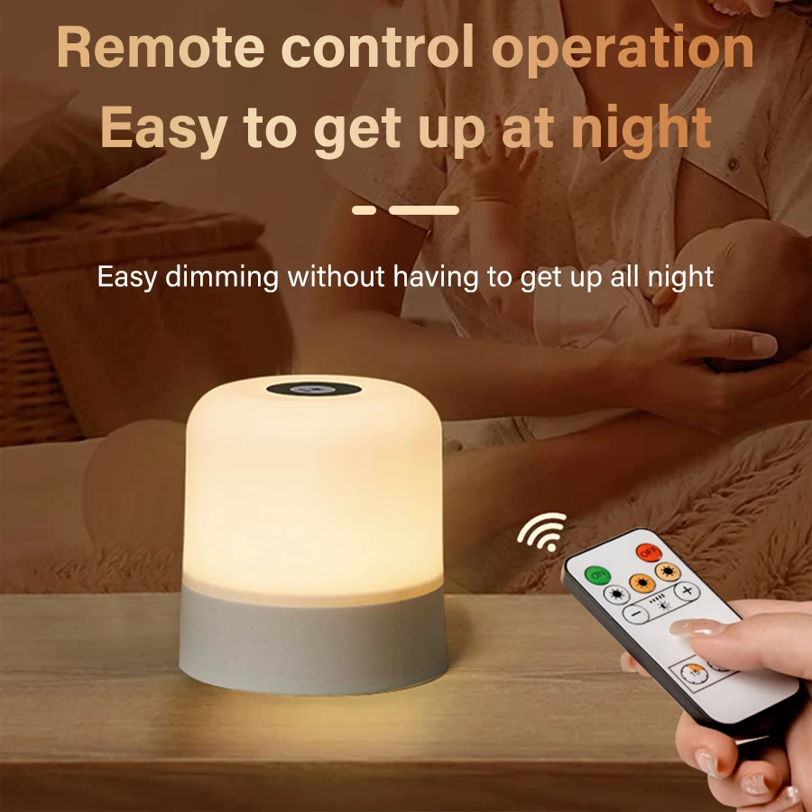 Portable bedside table lamp with 16 color RGB lighting, touch control, and remote operation. Features adjustable brightness, multiple lighting modes, and a rechargeable design, making it ideal for bedrooms, nightstands, living rooms, or ambient room décor.