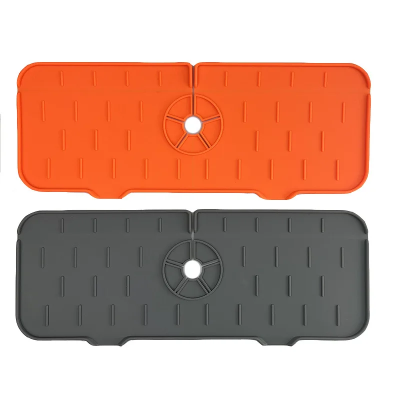 This silicone absorbent mat protects countertops from water splashes while providing a convenient draining surface for dishes and utensils. Durable and easy to clean, it doubles as a splash guard and countertop protector, making it ideal for kitchens and bathrooms. Its flexible design fits neatly around sinks and appliances.