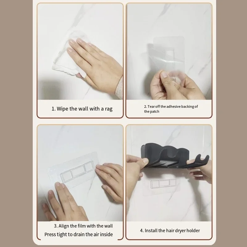Keep your bathroom neat and organized with this wall-mounted hair dryer holder. Designed with a non-perforated, no-drill installation, it securely attaches to the wall without causing damage. The durable bracket provides convenient storage for your hair dryer and other styling tools, keeping them easily accessible while saving counter space. Its sleek, modern design complements any bathroom décor, combining functionality with a clean, minimalist look. Perfect for daily use, this organizer helps maintain a tidy, efficient grooming area.