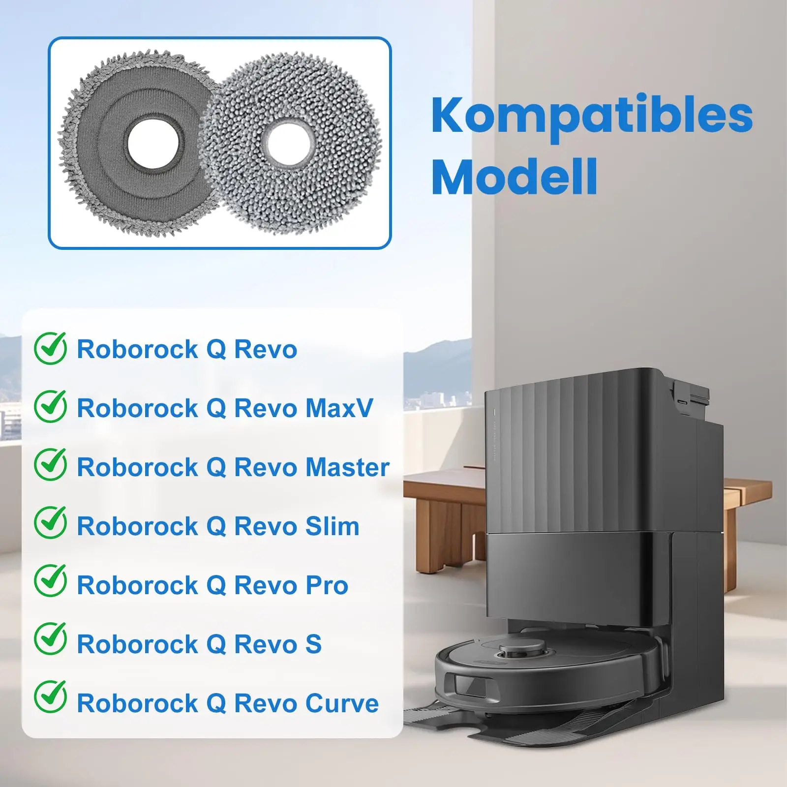Replacement mop wipes designed for Roborock Saros 10R and Q Revo series robot vacuum cleaners. Durable and washable for effective floor mopping and easy maintenance.